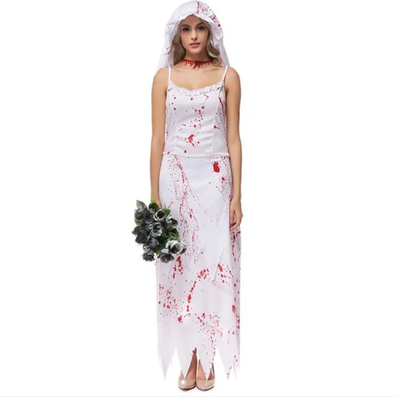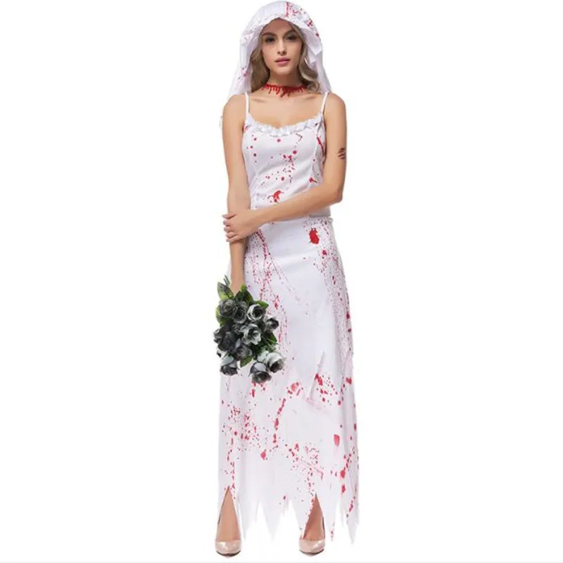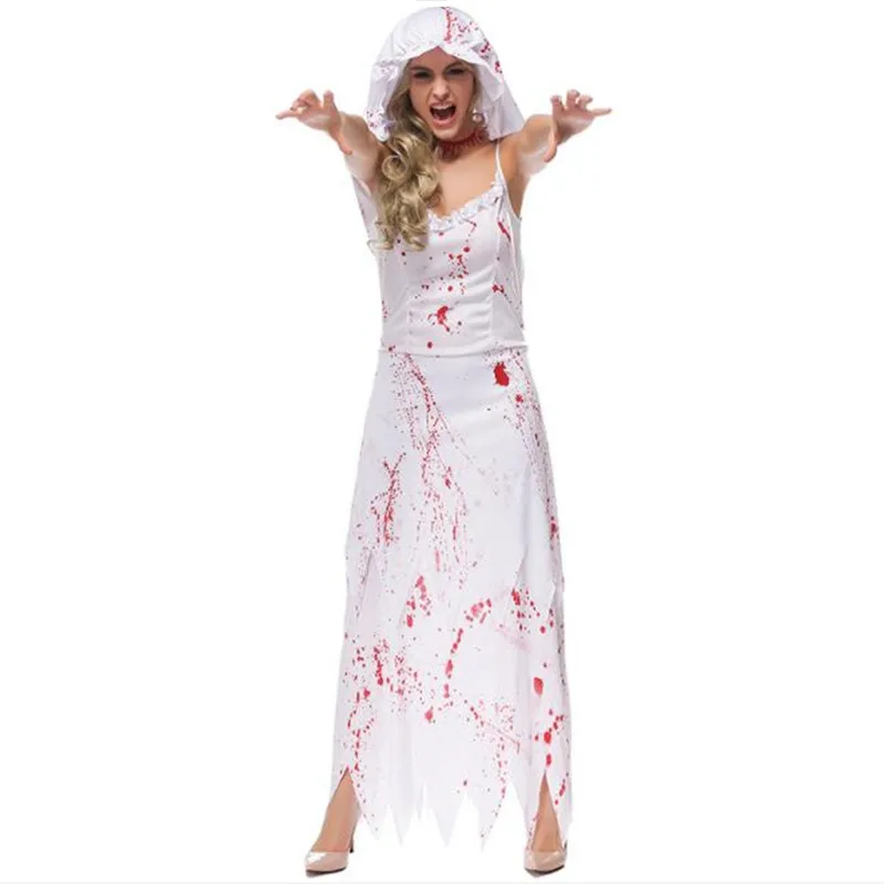 HOT Sale Carnival Adult Woman White Bloody Ghost Bride Cosplay Costume Female Stage Performance Costumes Par
