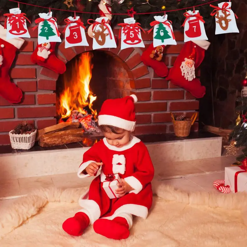 Christmas Advent Calendars 24 Days Countdown Calendar Hanging Felt Drawstring Gift Bags For Xmas Tr