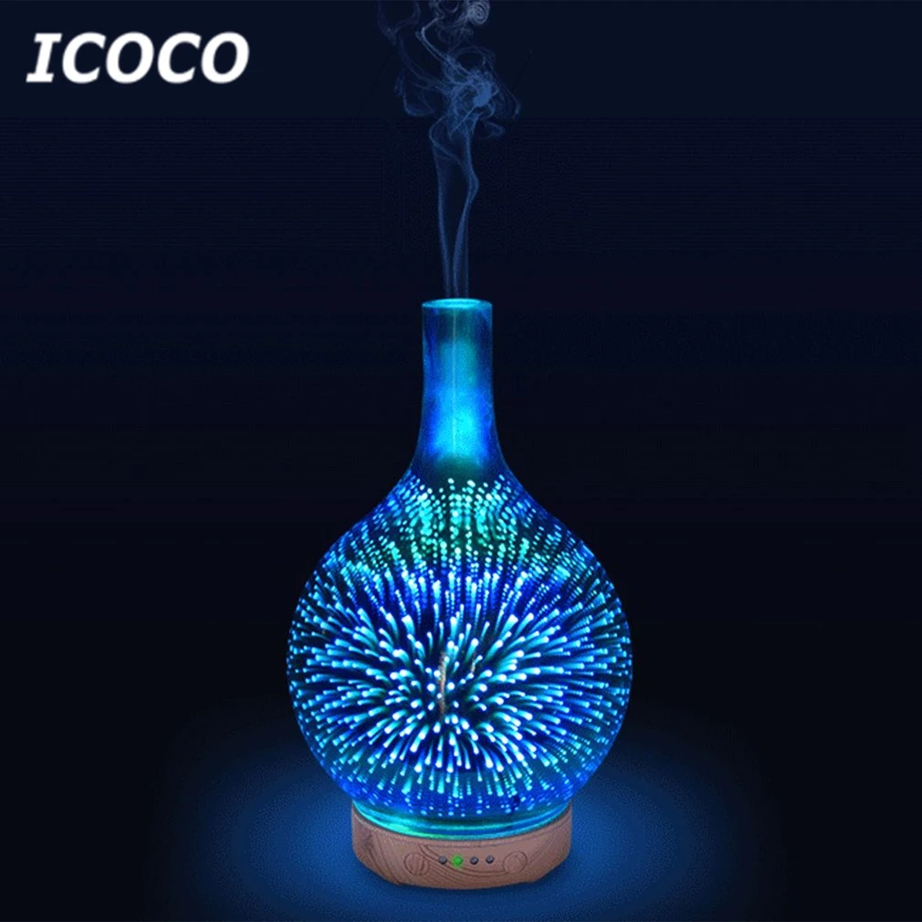 BEST ICOCO Portable 3D Effect LED Night Light with Essential Oil Aroma Diffuser Super Quiet Humidifier B