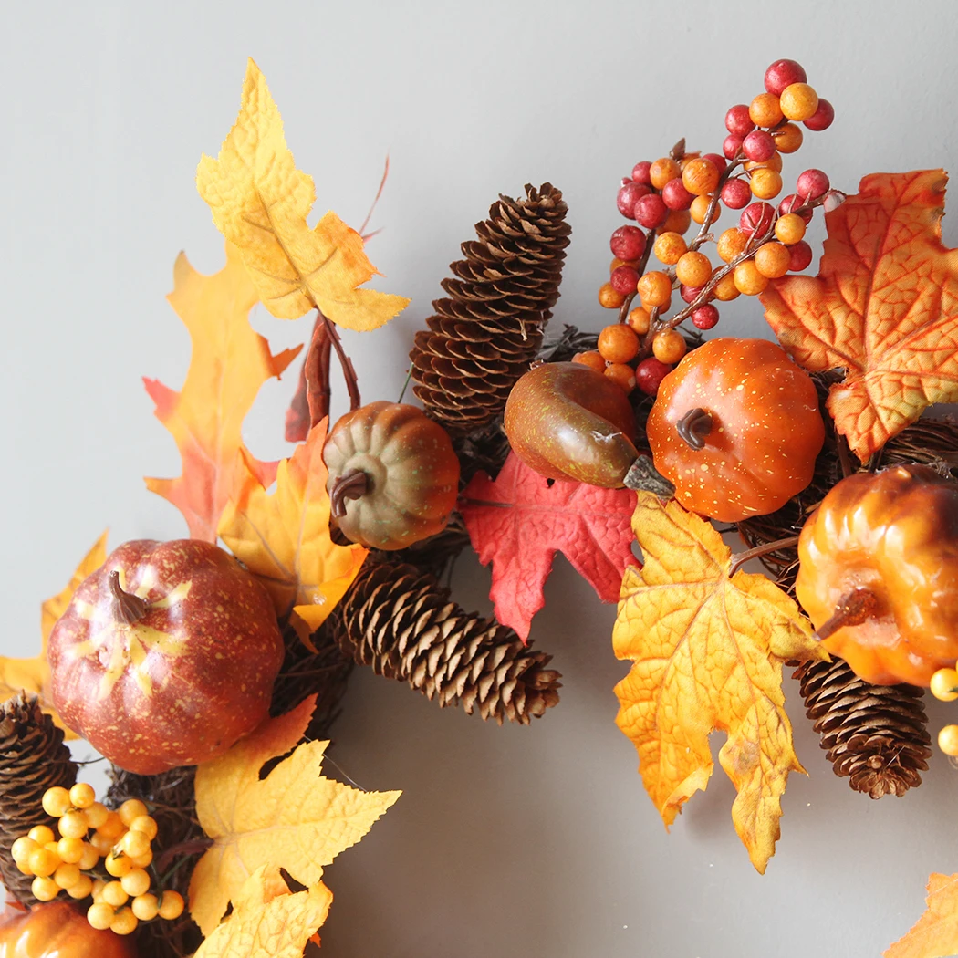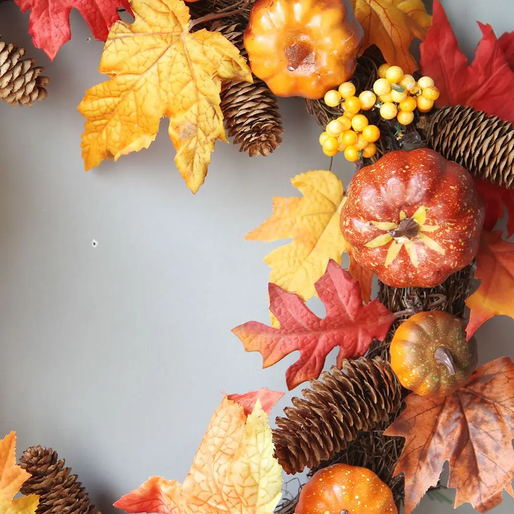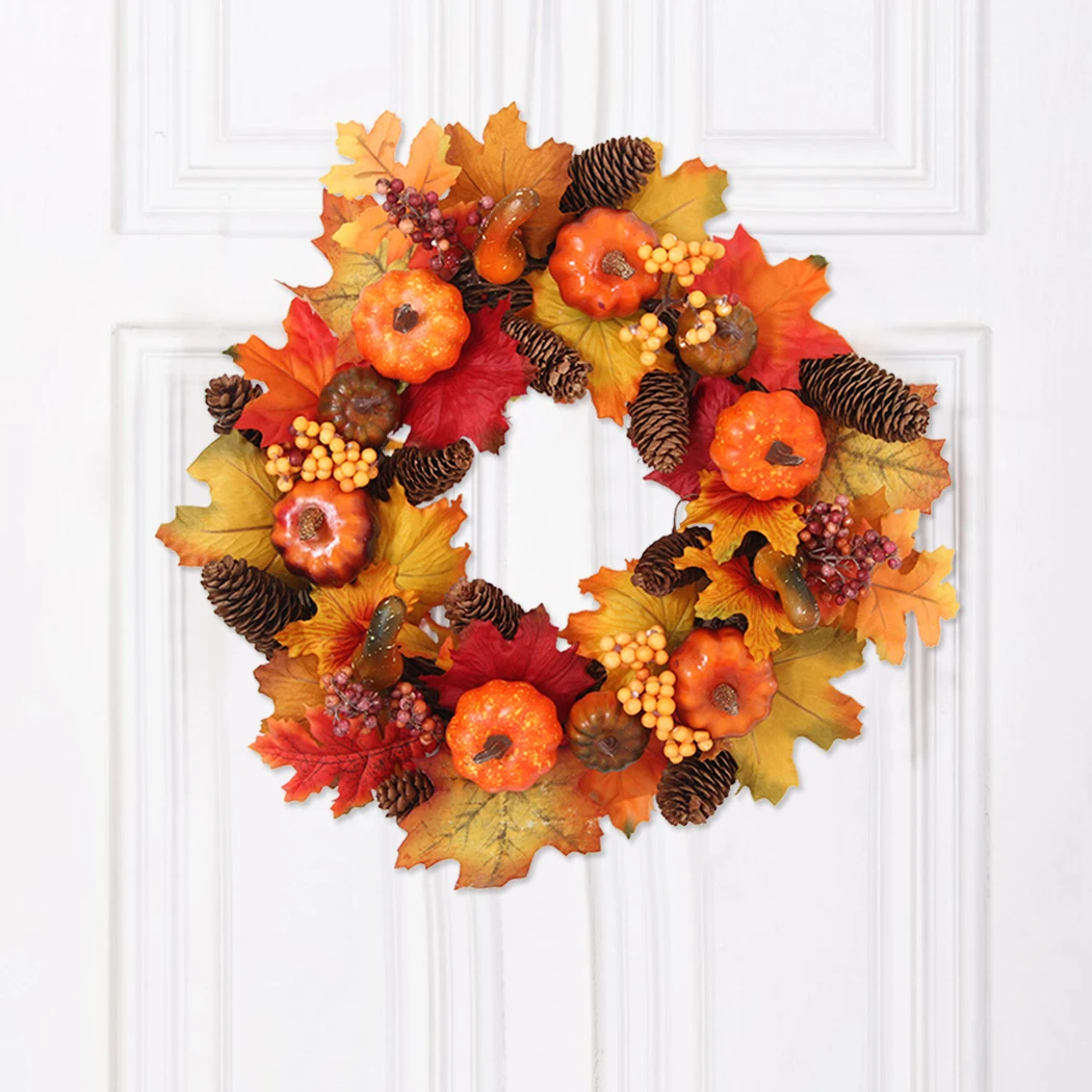 Artificial Maple Leaves Wreath Door Pumpkin Hanging Wall Window Decoration Wreath Holiday Festival