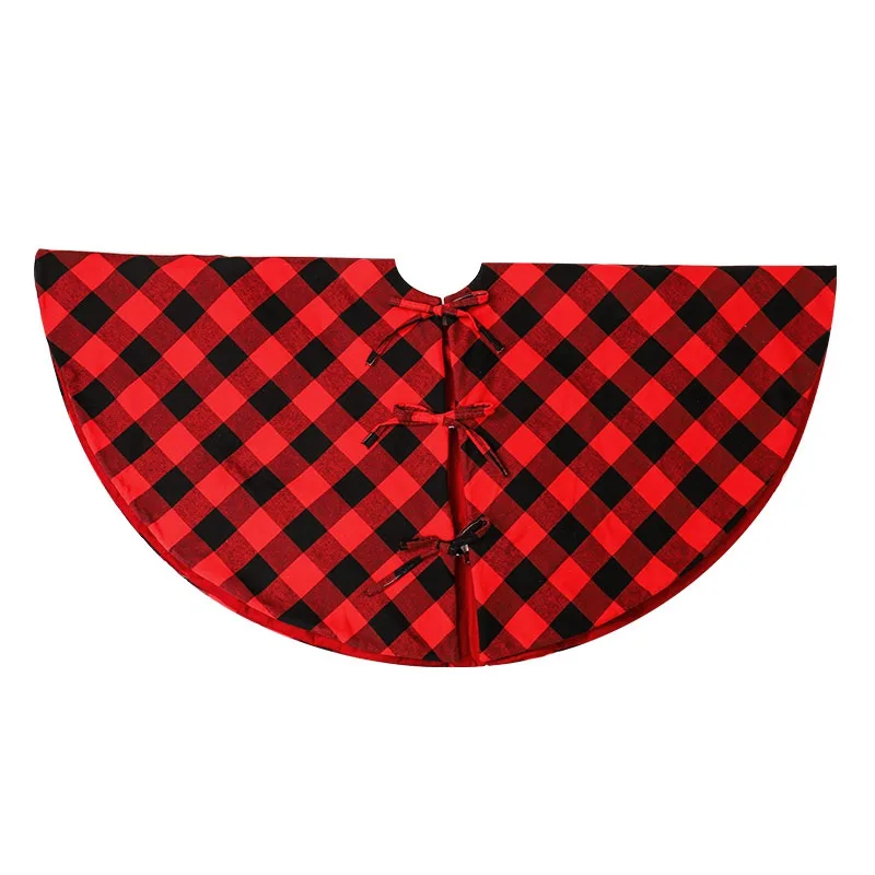 1pcs Lovely 47.2-Inch Large Sized Christmas Tree Skirt Red And Black Lattice Design Xmas Tree Apron