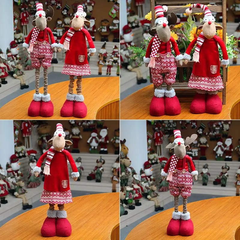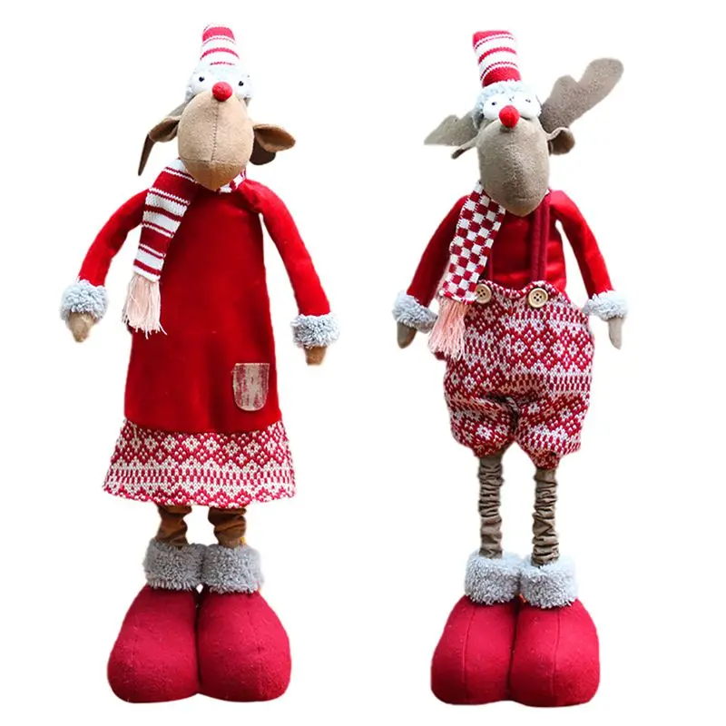 Christmas Reindeer Doll With Telescopic Legs Stuffed Animal Toy Holiday Figurines Gift Desktop Orna