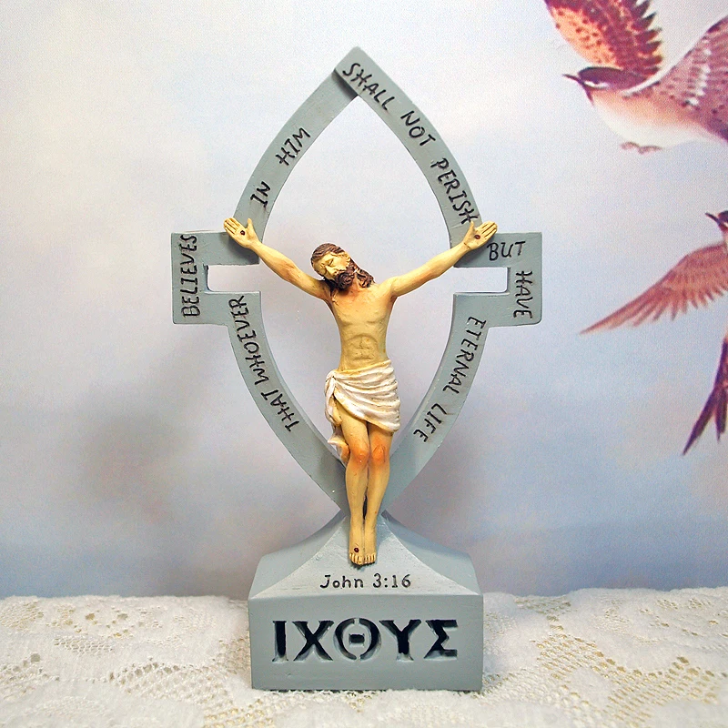 God Christian Crucifix Resin Statue Jesus Sculpture Home Decor Christian Gift Cross Ornaments Chris